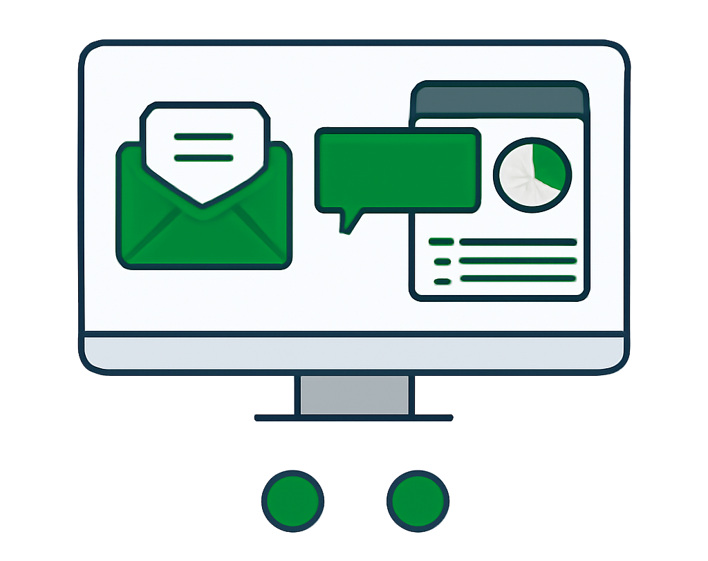Envios por WhatsApp ou e-mail com rastreabilidade.